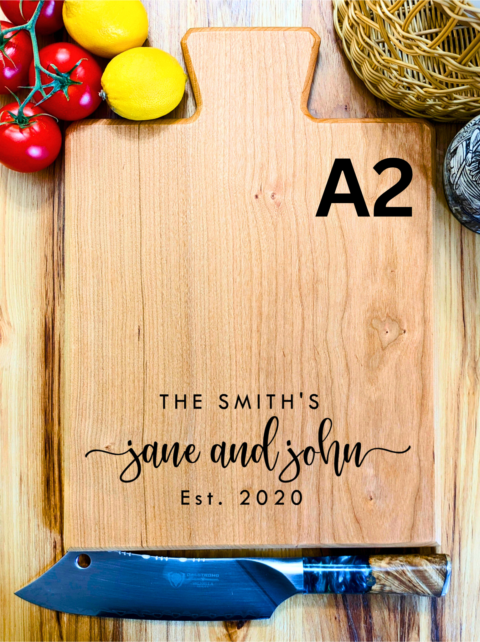To select one of our unique designs, select the design option drop down, and click on the design number (located in the upper right corner of each example picture.) To customize the design with the names and dates you wish, you must type the desired values in order separated by commas. Example, I'd like to use design A1. A1 has two names and an establish date, so I'd type: Jane, John, 2020. Sizing will be based off of the length of the names.
